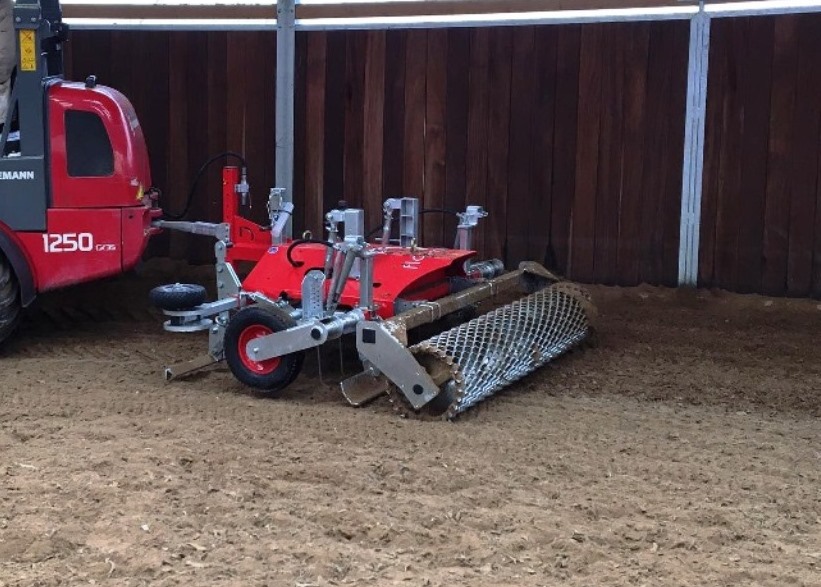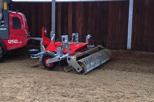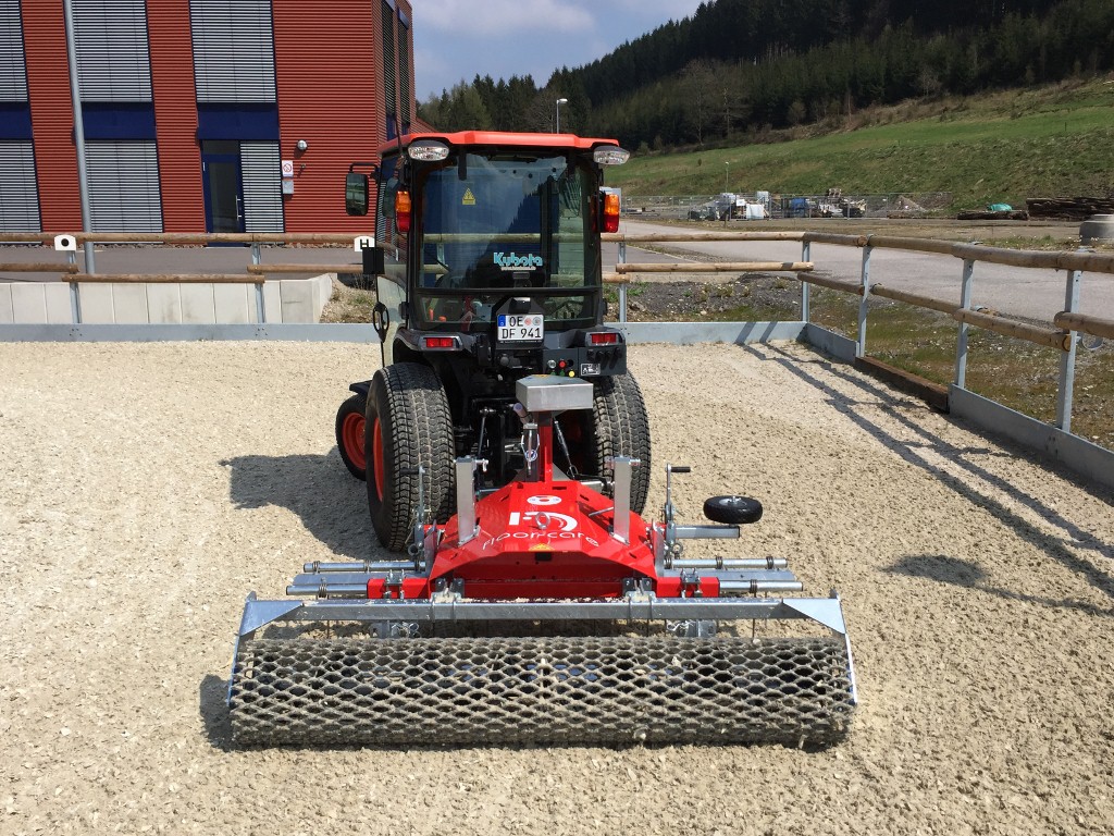 Reitplatz-Pflegegerät floor-care AHK in der Arbeitsbreite von 1,25 m oder 1,45 m. Konzipiert für kleine Zugfahrzeug wie Rasentraktoren, ATV‘s, kleinere Knicklenker / Hoftracks.