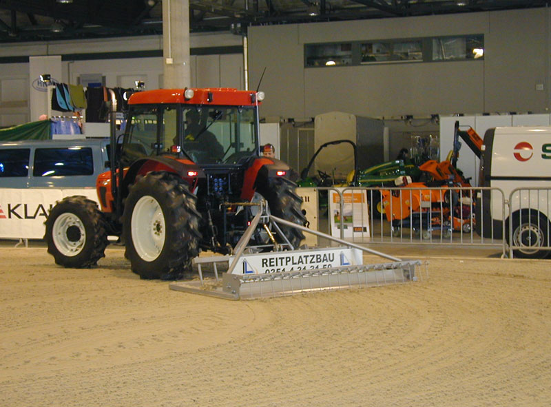Dieser Reitbahn-Planer wurde speziell für die Pflege und Glättung unebener und verfestigter Vlies-, Geotextil sowie Sandböden entwickelt und wird in den Arbeitsbreiten von 1,5m bis 2,5m gebaut.